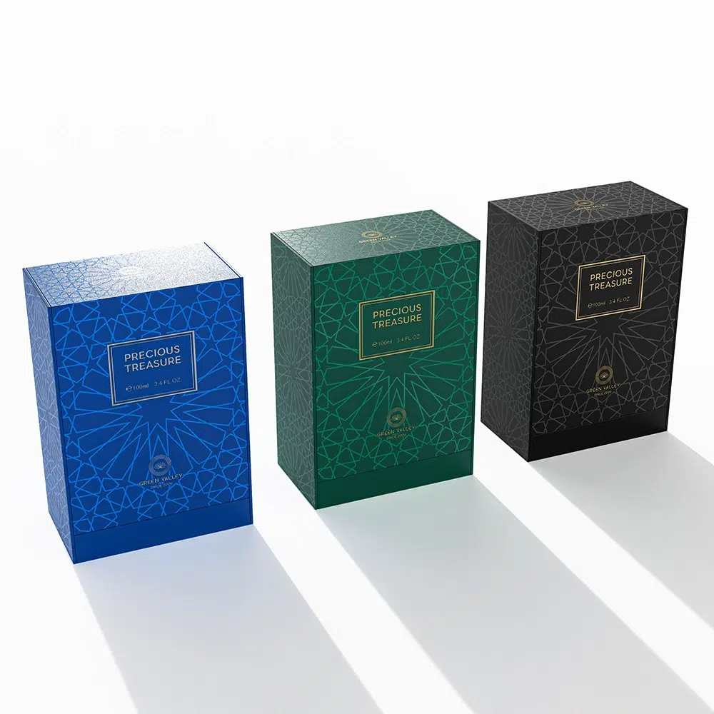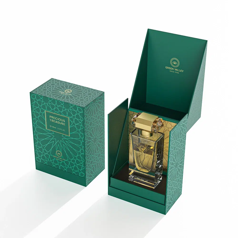 Custom luxury perfume gift box with classic elegant design and premium luxurious texture.
