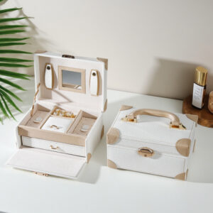 二層構造の高級ジュエリー&メイクアップケース(メイクアップミラー付き)