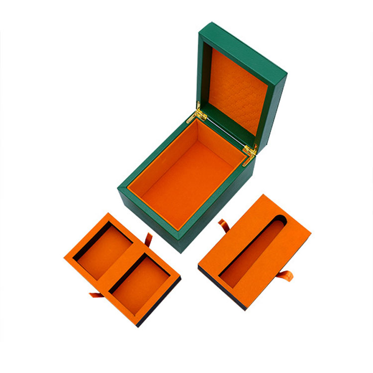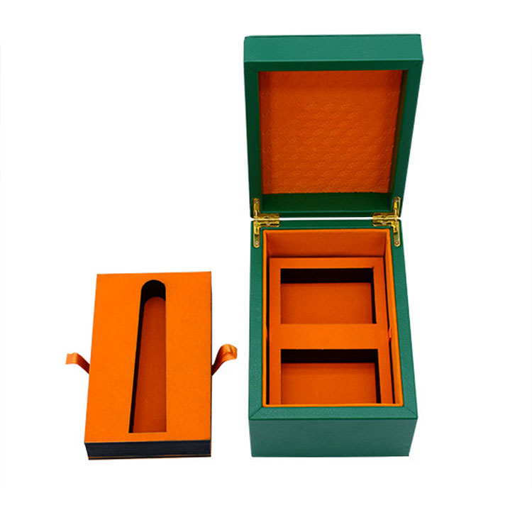 leather storage boxes. High-end dark green PU leather storage box with orange interior, specially designed for cigars and cannabis. It features an exquisite and luxurious appearance with great practicality. Whether used for storing small items or as material for arts and crafts projects, this storage box can fully meet your needs.