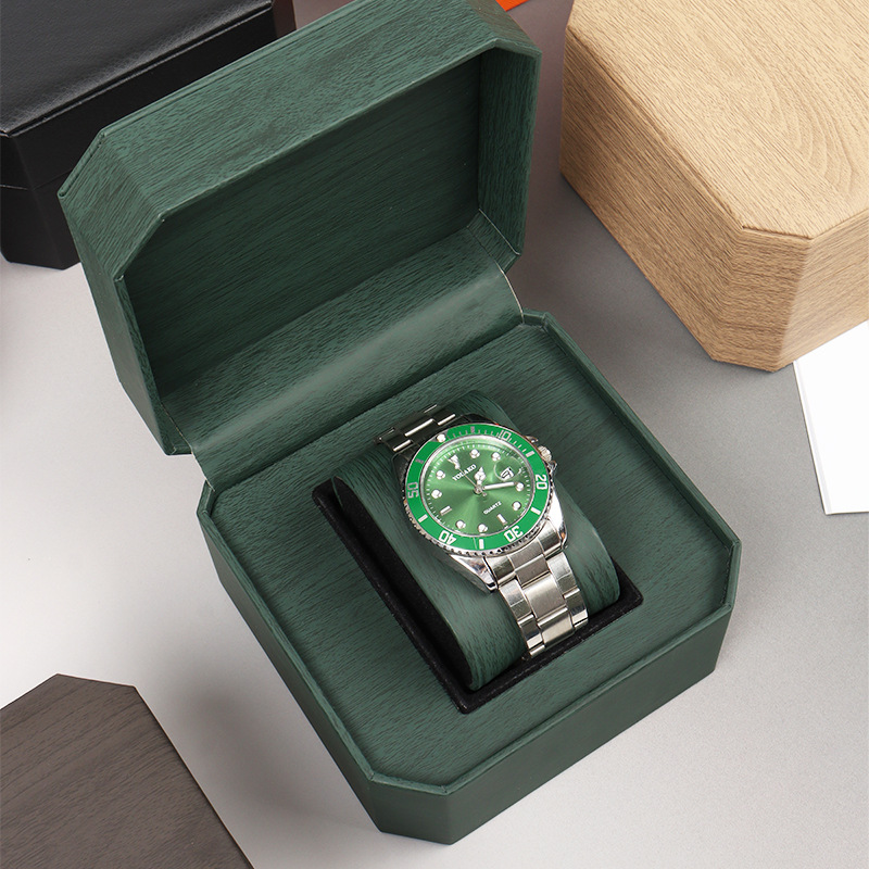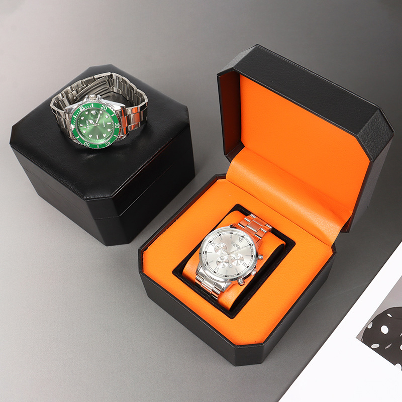 Octagonal luxury PU leather watch box features unique octagonal shape and elegant minimalist style. Made of high-quality soft PU leather, wear-resistant and delicate. With velvet lining inside, it is dust-proof and scratch-proof to well protect watches. Exquisite and luxury appearance, ideal for watch storage and gift packaging. Logo customization is available to highlight high-end brand style.